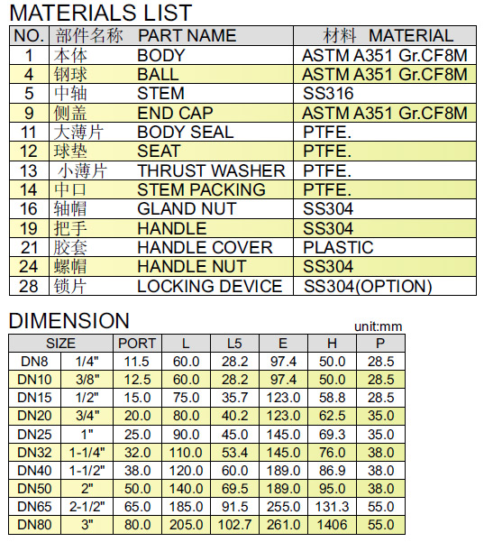 ● 管螺纹参照:ANSI B1.20.1(NPT)/DIN 259/DIN 2999/ISO 228/BSP/PT